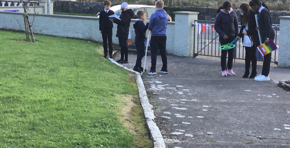 Fifth and Sixth Class pupils participated in a Maths Trail at the front of the school as part of Maths Week.